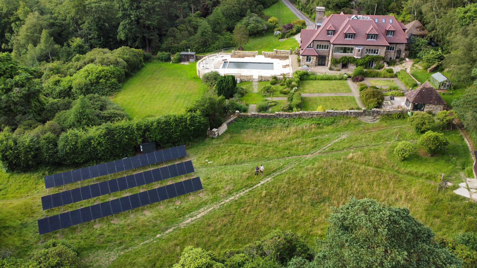 Solar PV ground fixed solar panel assembly package, but instead of on the roof, it is ground mounted.